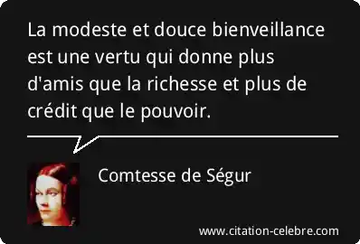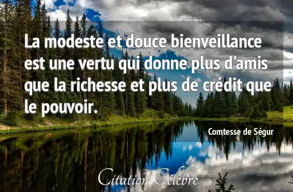 La modeste et douce bienveillance est une vertu qui donne plus d'amis que la richesse et plus de crédit que le pouvoir.