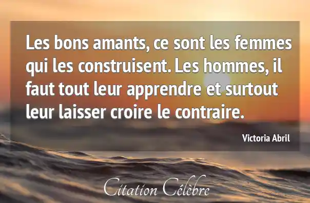 Les bons amants, ce sont les femmes qui les construisent. Les hommes, il faut tout leur apprendre et surtout leur laisser croire le contraire.