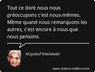 Tout ce dont nous nous préoccupons c'est nous-mêmes. Même quand nous remarquons les autres, c'est encore à nous que nous pensons.