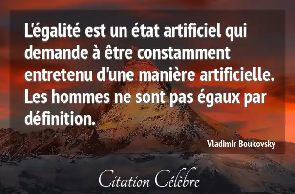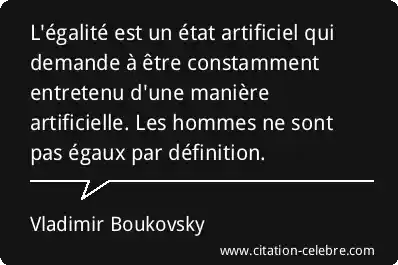L'égalité est un état artificiel qui demande à être constamment entretenu d'une manière artificielle. Les hommes ne sont pas égaux par définition.