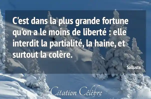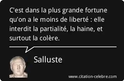 C'est dans la plus grande fortune qu'on a le moins de liberté : elle interdit la partialité, la haine, et surtout la colère.