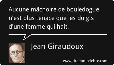 Aucune mâchoire de bouledogue n'est plus tenace que les doigts d'une femme qui hait.