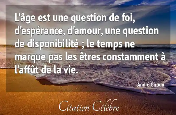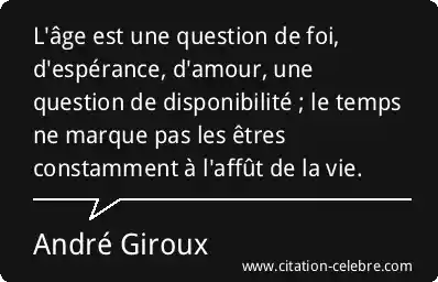 L'âge est une question de foi, d'espérance, d'amour, une question de disponibilité ; le temps ne marque pas les êtres constamment à l'affût de la vie.