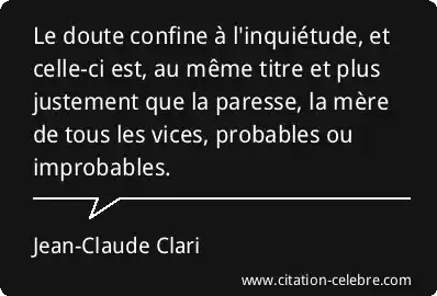 Le doute confine à l'inquiétude, et celle-ci est, au même titre et plus justement que la paresse, la mère de tous les vices, probables ou improbables.