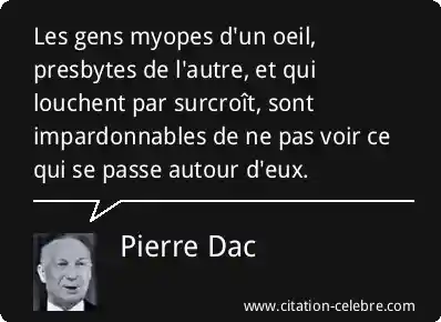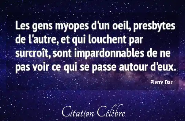 Les gens myopes d'un oeil, presbytes de l'autre, et qui louchent par surcroît, sont impardonnables de ne pas voir ce qui se passe autour d'eux.
