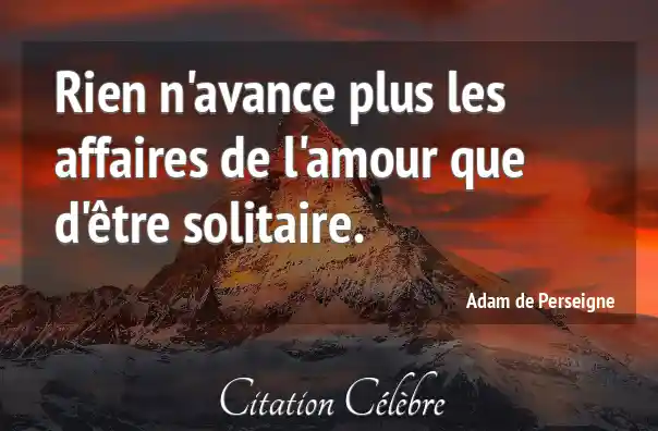 Rien n'avance plus les affaires de l'amour que d'être solitaire.