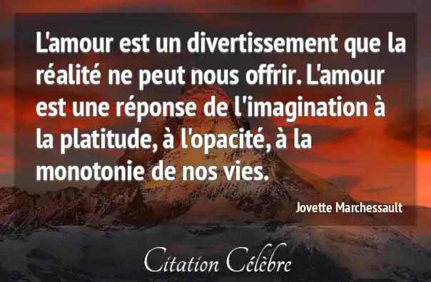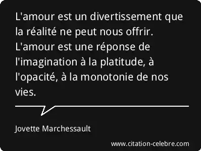 L'amour est un divertissement que la réalité ne peut nous offrir. L'amour est une réponse de l'imagination à la platitude, à l'opacité, à la monotonie de nos vies.