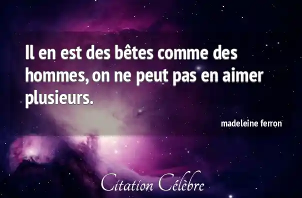 Il en est des bêtes comme des hommes, on ne peut pas en aimer plusieurs.