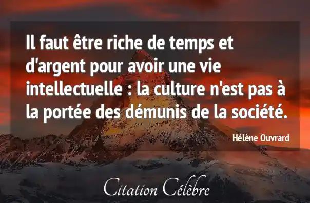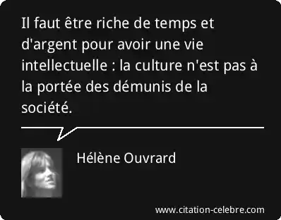 Il faut être riche de temps et d'argent pour avoir une vie intellectuelle : la culture n'est pas à la portée des démunis de la société.