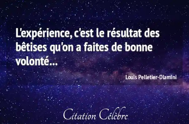 L'expérience, c'est le résultat des bêtises qu'on a faites de bonne volonté...