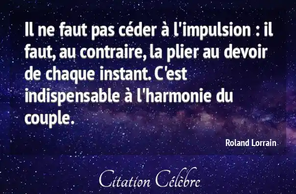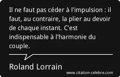 Il ne faut pas céder à l'impulsion : il faut, au contraire, la plier au devoir de chaque instant. C'est indispensable à l'harmonie du couple.