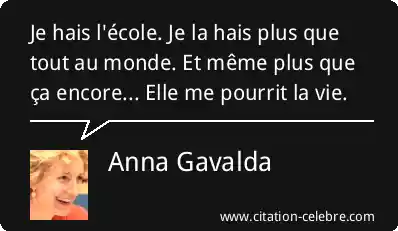 Je hais l'école. Je la hais plus que tout au monde. Et même plus que ça encore... Elle me pourrit la vie.