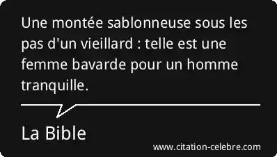Une montée sablonneuse sous les pas d'un vieillard : telle est une femme bavarde pour un homme tranquille.