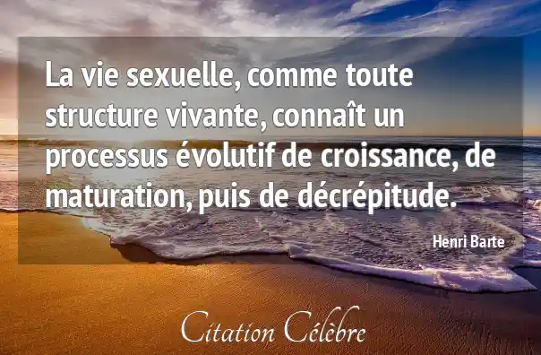 La vie sexuelle, comme toute structure vivante, connaît un processus évolutif de croissance, de maturation, puis de décrépitude.