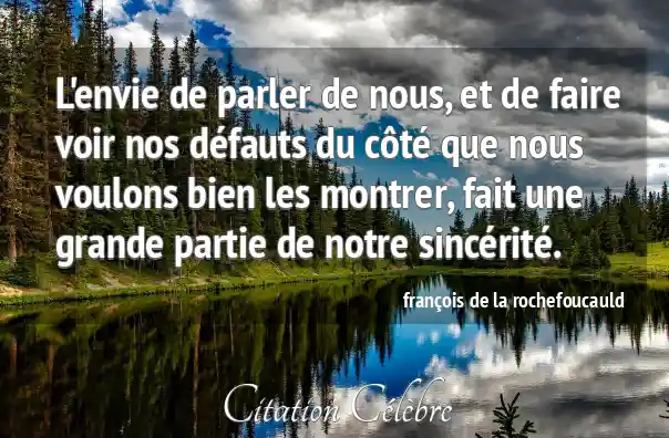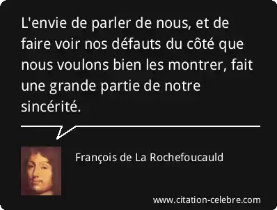 L'envie de parler de nous, et de faire voir nos défauts du côté que nous voulons bien les montrer, fait une grande partie de notre sincérité.