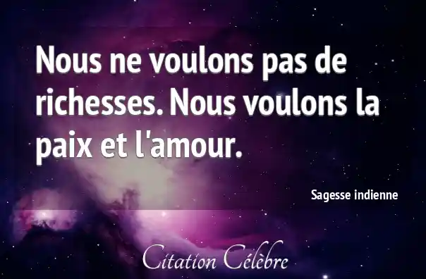 Nous ne voulons pas de richesses. Nous voulons la paix et l'amour.