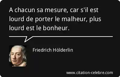 A chacun sa mesure, car s'il est lourd de porter le malheur, plus lourd est le bonheur.
