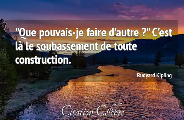 "Que pouvais-je faire d'autre ?" C'est là le soubassement de toute construction.