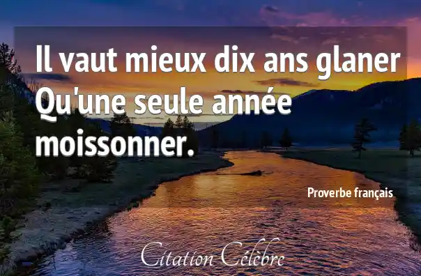 Il vaut mieux dix ans glaner Qu'une seule année moissonner.