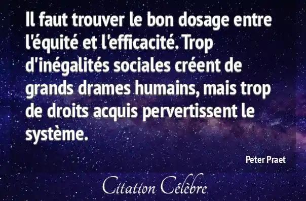Il faut trouver le bon dosage entre l'équité et l'efficacité. Trop d'inégalités sociales créent de grands drames humains, mais trop de droits acquis pervertissent le système.