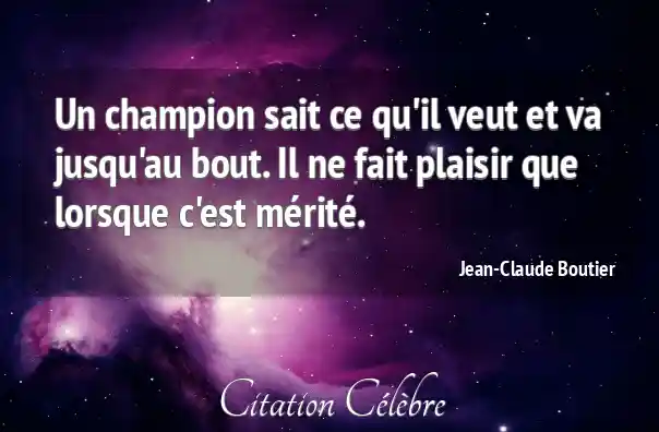 Un champion sait ce qu'il veut et va jusqu'au bout. Il ne fait plaisir que lorsque c'est mérité.