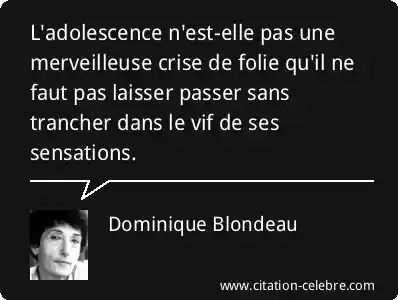 L'adolescence n'est-elle pas une merveilleuse crise de folie qu'il ne faut pas laisser passer sans trancher dans le vif de ses sensations.