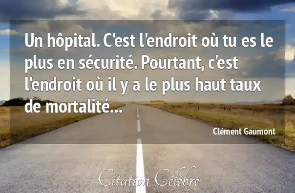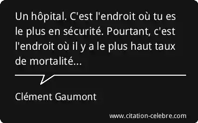 Un hôpital. C'est l'endroit où tu es le plus en sécurité. Pourtant, c'est l'endroit où il y a le plus haut taux de mortalité...