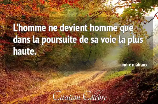 Citation André Malraux homme : L'homme ne devient homme que dans la poursuite de sa...