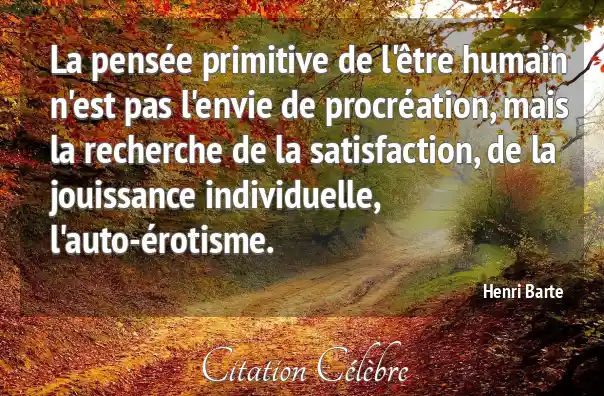 La pensée primitive de l'être humain n'est pas l'envie de procréation, mais la recherche de la satisfaction, de la jouissance individuelle, l'auto-érotisme.