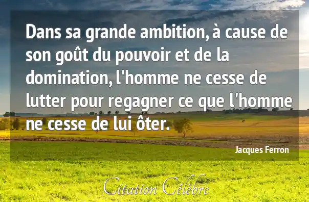 Dans sa grande ambition, à cause de son goût du pouvoir et de la domination, l'homme ne cesse de lutter pour regagner ce que l'homme ne cesse de lui ôter.