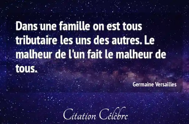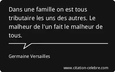 Dans une famille on est tous tributaire les uns des autres. Le malheur de l'un fait le malheur de tous.