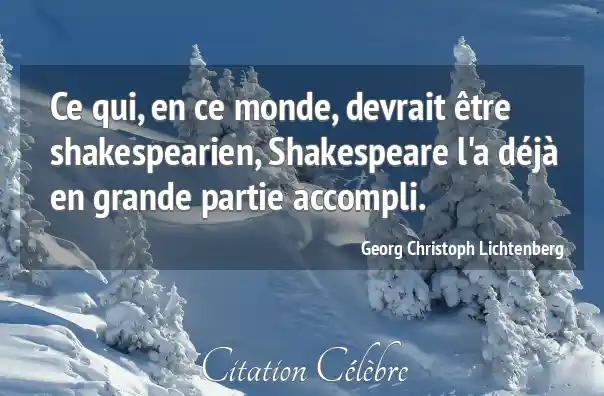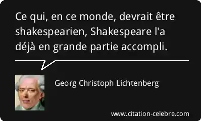 Ce qui, en ce monde, devrait être shakespearien, Shakespeare l'a déjà en grande partie accompli.
