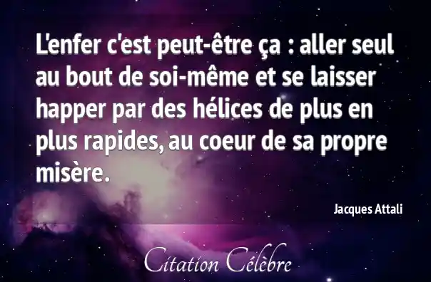 L'enfer c'est peut-être ça : aller seul au bout de soi-même et se laisser happer par des hélices de plus en plus rapides, au coeur de sa propre misère.