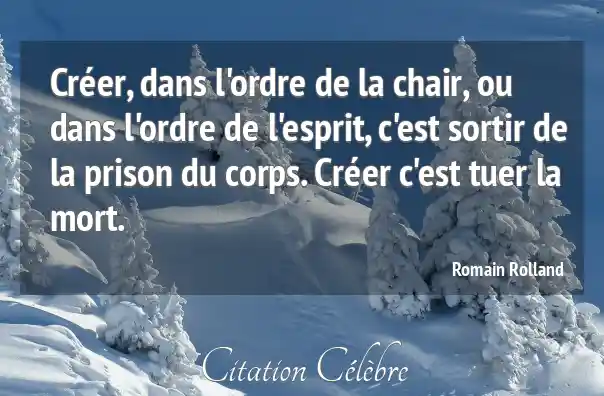 Créer, dans l'ordre de la chair, ou dans l'ordre de l'esprit, c'est sortir de la prison du corps. Créer c'est tuer la mort.