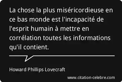 La chose la plus miséricordieuse en ce bas monde est l'incapacité de l'esprit humain à mettre en corrélation toutes les informations qu'il contient.