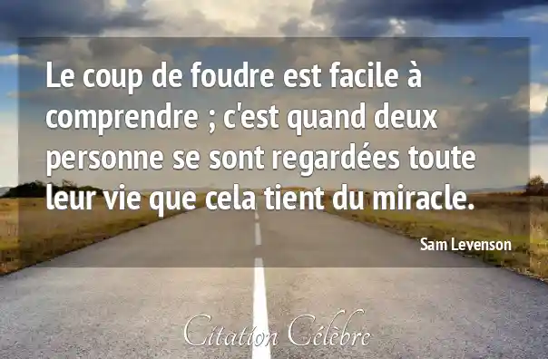Le coup de foudre est facile à comprendre ; c'est quand deux personne se sont regardées toute leur vie que cela tient du miracle.