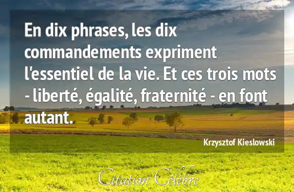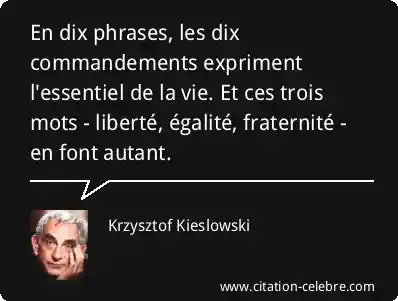 En dix phrases, les dix commandements expriment l'essentiel de la vie. Et ces trois mots - liberté, égalité, fraternité - en font autant.