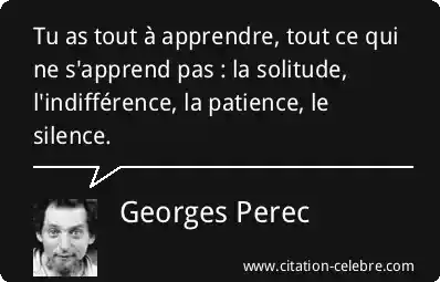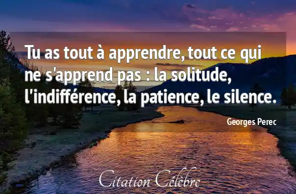 Tu as tout à apprendre, tout ce qui ne s'apprend pas : la solitude, l'indifférence, la patience, le silence.