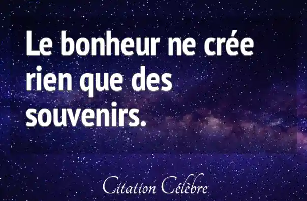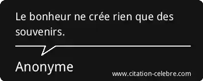 Le bonheur ne crée rien que des souvenirs.