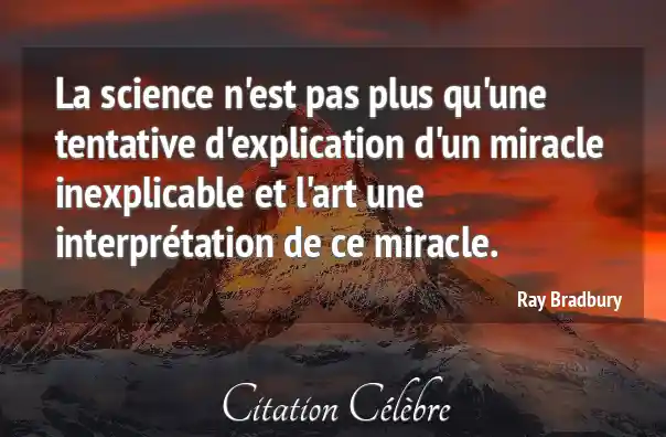 La science n'est pas plus qu'une tentative d'explication d'un miracle inexplicable et l'art une interprétation de ce miracle.