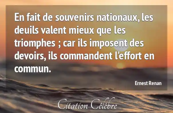 En fait de souvenirs nationaux, les deuils valent mieux que les triomphes ; car ils imposent des devoirs, ils commandent l'effort en commun.