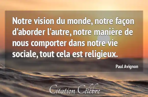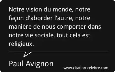 Notre vision du monde, notre façon d'aborder l'autre, notre manière de nous comporter dans notre vie sociale, tout cela est religieux.