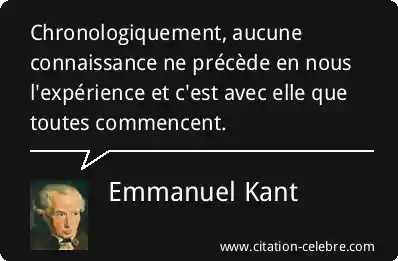 Chronologiquement, aucune connaissance ne précède en nous l'expérience et c'est avec elle que toutes commencent.