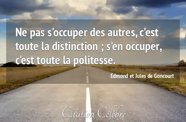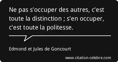 Ne pas s'occuper des autres, c'est toute la distinction ; s'en occuper, c'est toute la politesse.