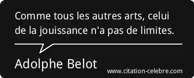 Comme tous les autres arts, celui de la jouissance n'a pas de limites.