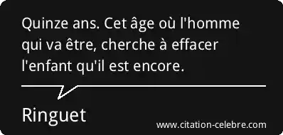 Quinze ans. Cet âge où l'homme qui va être, cherche à effacer l'enfant qu'il est encore.