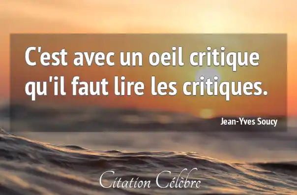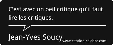 Citation Jean-Yves Soucy critique : C'est avec un oeil critique qu'il faut lire les critiques....