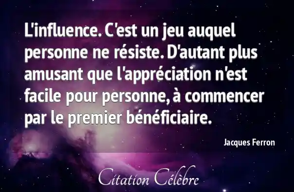 L'influence. C'est un jeu auquel personne ne résiste. D'autant plus amusant que l'appréciation n'est facile pour personne, à commencer par le premier bénéficiaire.