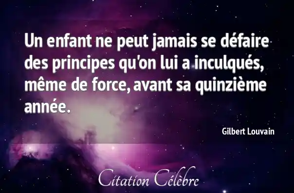 Un enfant ne peut jamais se défaire des principes qu'on lui a inculqués, même de force, avant sa quinzième année.