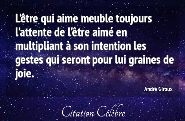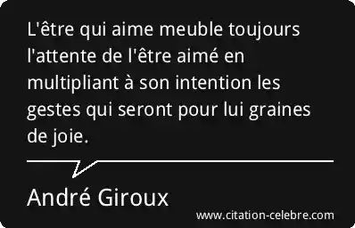 L'être qui aime meuble toujours l'attente de l'être aimé en multipliant à son intention les gestes qui seront pour lui graines de joie.